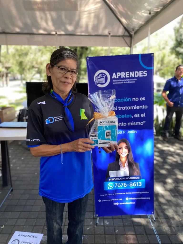 Durante la jornada, los asistentes recibieron información detallada sobre APRENDES, su misión y los servicios que ofrece a la comunidad. Como parte de las actividades, se realizó una rifa de un glucómetro, cuya ganadora fue la participante número 22.